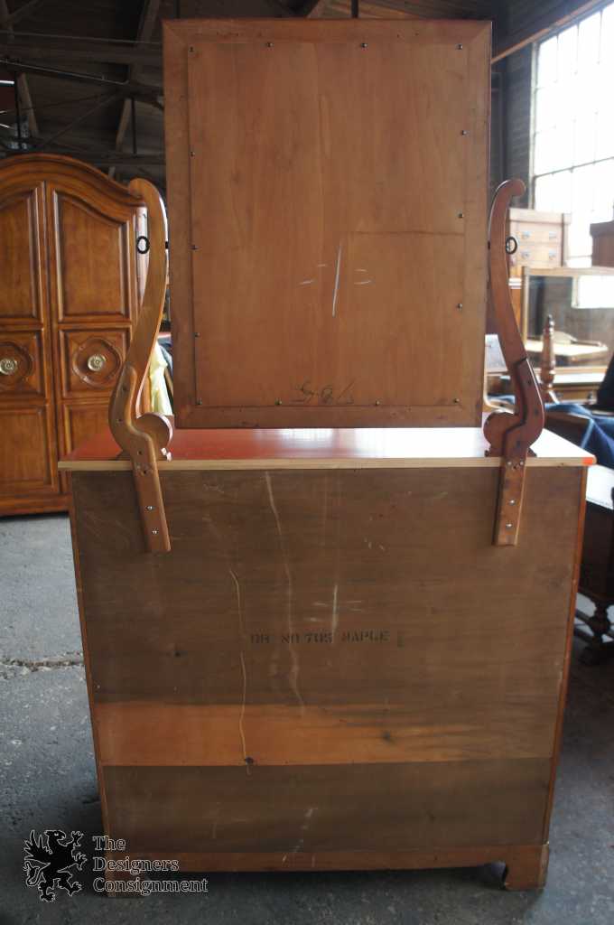 Very Good Considering Age - Streaking to Mirror; Split and some light marking above upper drawer. Small ding towards the right of the lowest drawer. Top surface in exceptional condition!