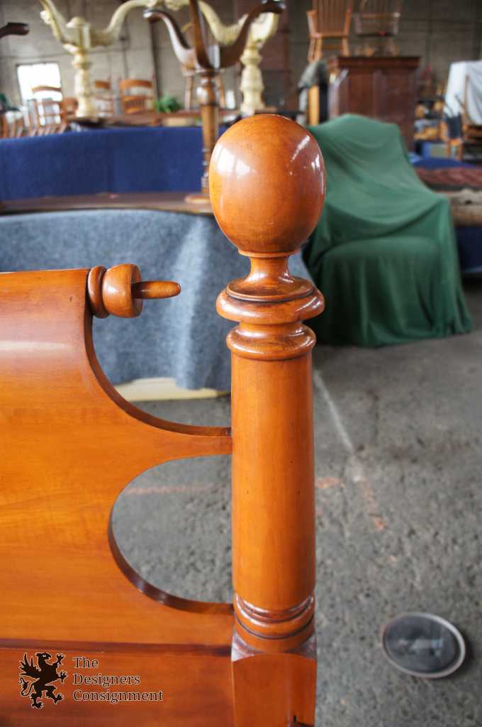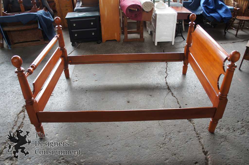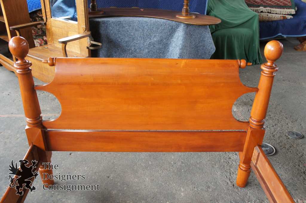 A gorgeous bed by National Furniture Co. Early american cannonball style. Made in the early 1900s from solid maple. National Furniture Co operated until 1929 before its name changed, later merging with National Mount Airy. This bed will be hand delivered via White Glove Service.