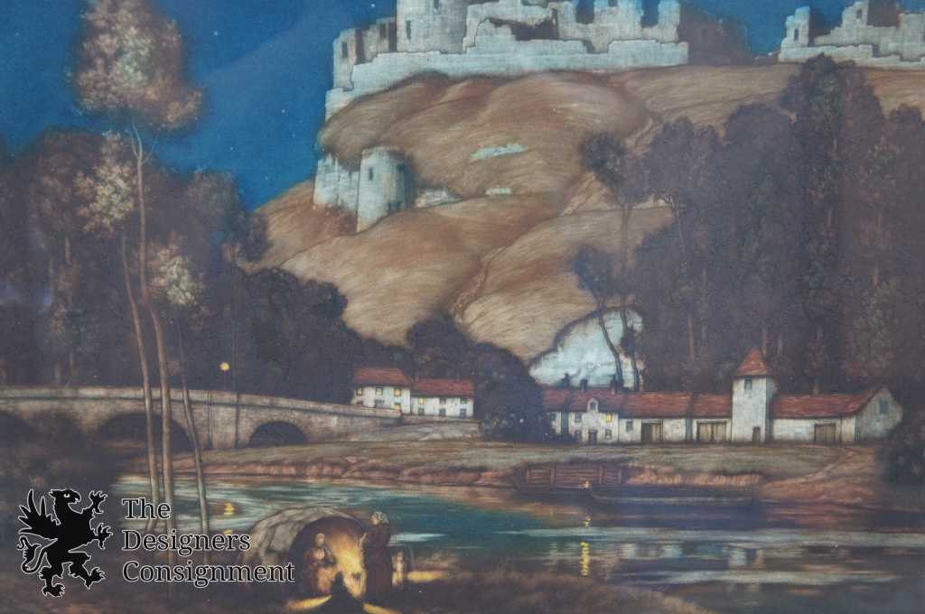 Frederick Marriott (1860-1941) colored aquatint etching titled: "Chateau Gaillard by Moonlight". The piece is signed "F. Marriott" in the lower right.