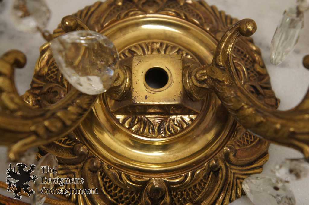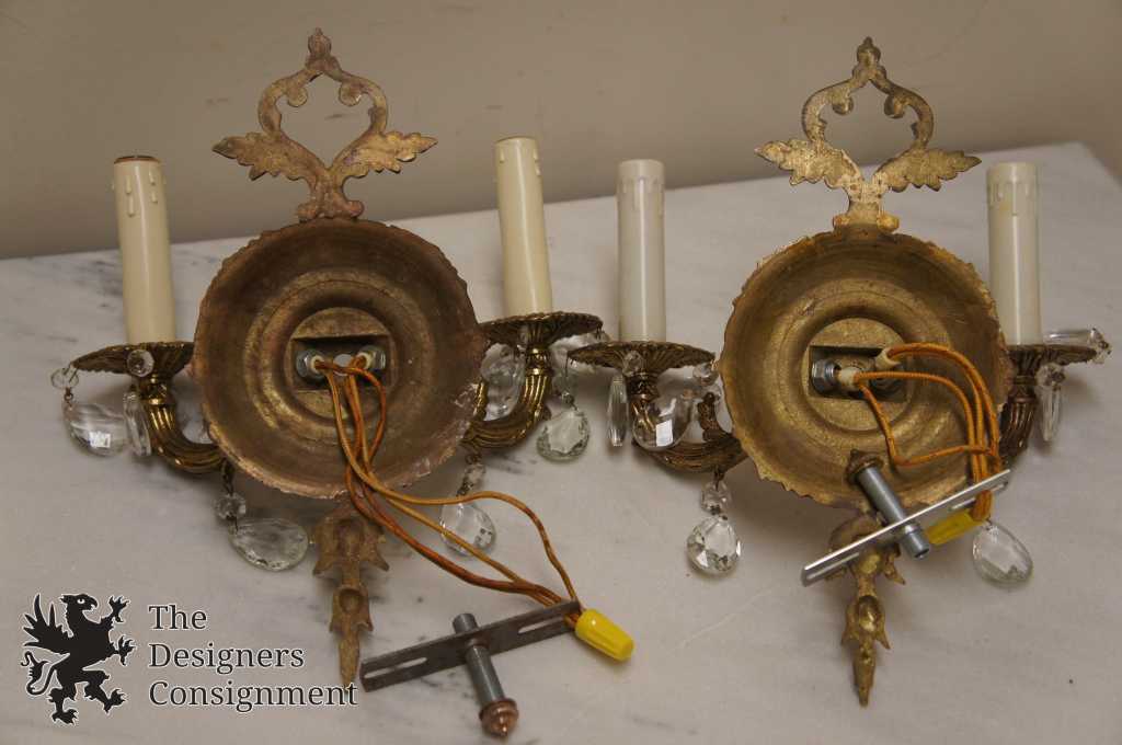 2 French Hollywood Regency Brass Sconces Candelabra Candlestick Crystal Light