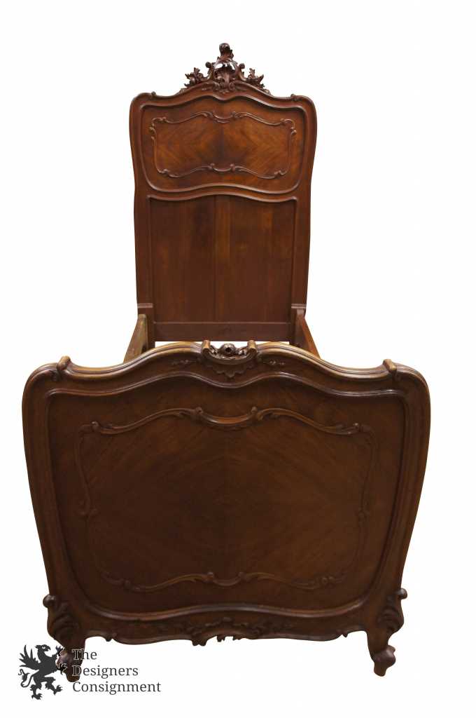 Louis Phillipe era twin size beds after Louis XV styling. Made from walnut with hand carved flourishes. Beautifully contoured, with an amazing grain pattern.