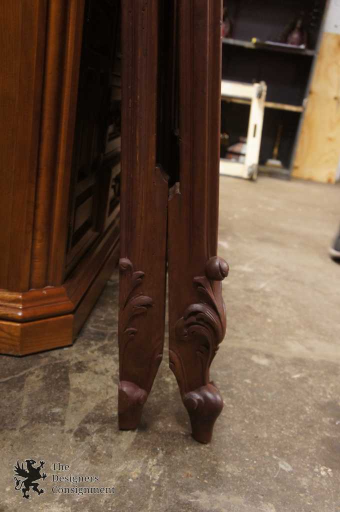 Good Antique Condition with general use related wear. - Only Two Rails Included; Both Rails have Heavy water Damage, and the connection points are splitting away. This is something we could always have reinforced or repaired in addition to having a second set made.; Damage to Finial and Some Damage to Flourishes.