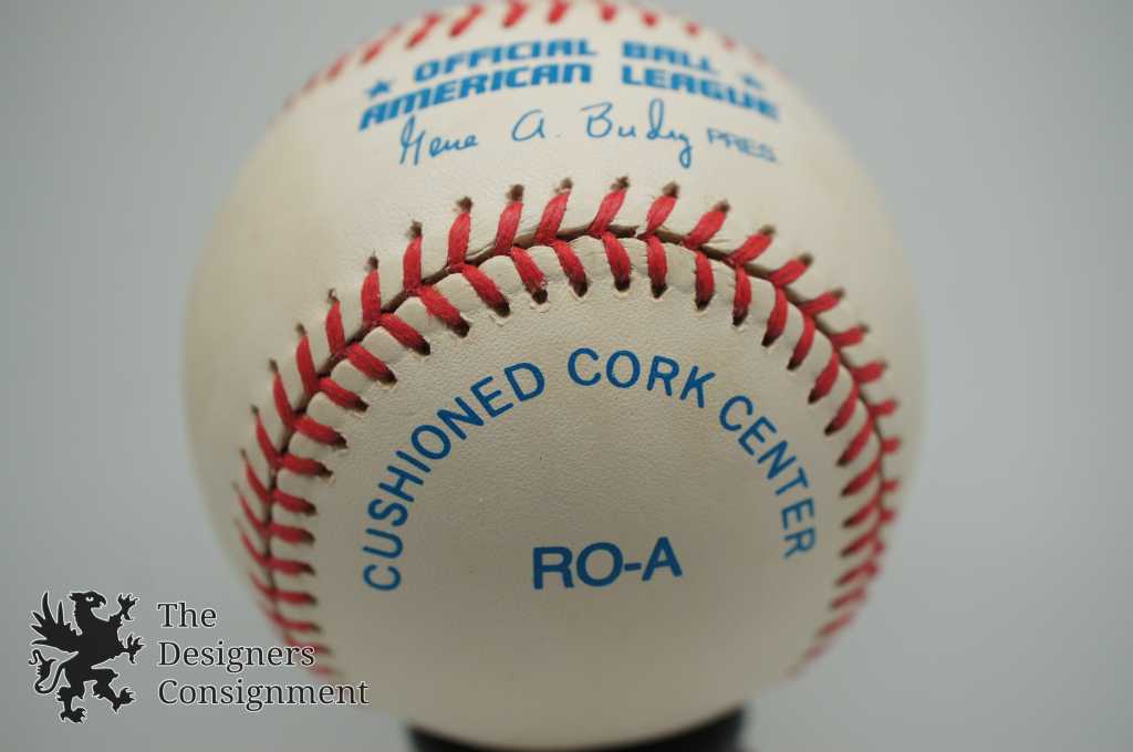 American League Official Ball - Gene A. Budy Pres. Signed by Pete Gray in blue between the seems. Pete Gray was an American professional ball player who played outfielder for the St. Louis Browns in 1945. Pete Gray was a one armed ball player and is one of the most remarkable players in baseball history.