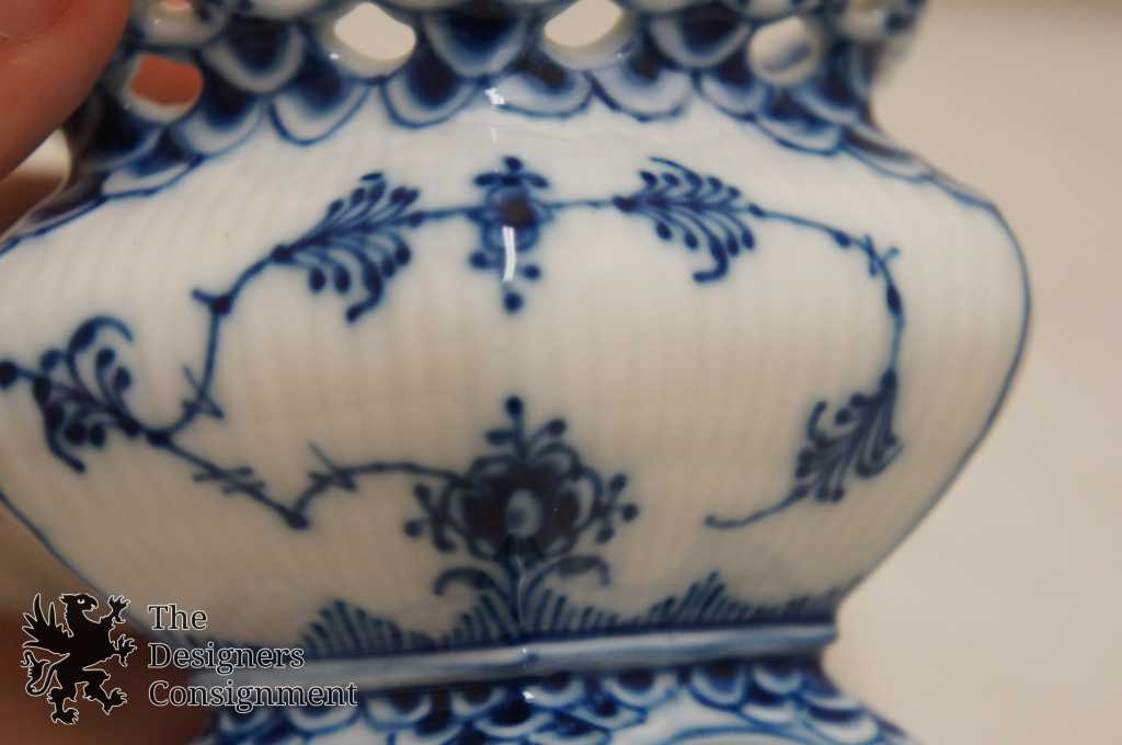 Full Lace Blue & White Sugar Bowl by Royal Copenhagen. Made from porcelain with reticulated design. Model 1112