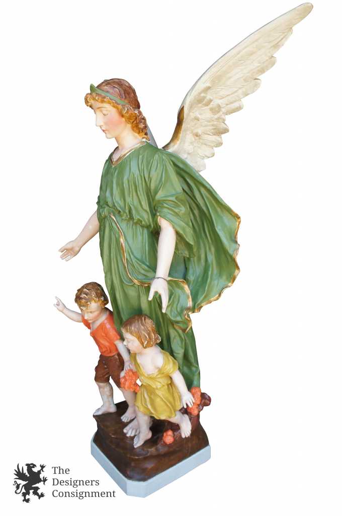 A magnificent early-mid 20th century statue by Deprato. Featured is a winged guardian Angel with 2 children. The statue is made from plaster before being hand-painted with gorgeous detail.