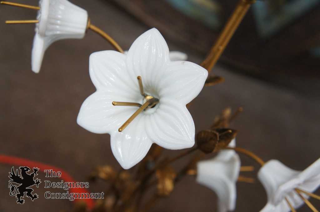 Lovely Florentine table lamp. Made from brass with a branched floral design showing porcelain flower pedals.