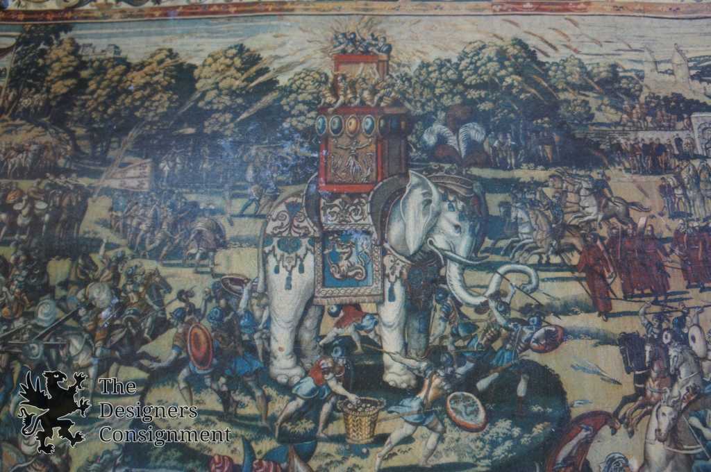 Up for consideration is a unique early 20th century piece purchased at the Natale Busoni Gallery in Italy. Featured is a print of a tapestry depicting a Renaissance battle. The scene at hand is most likely the battle of San Romano between the Florentine and Sienes forces in 1432. Along the front are 2 men and a woman. Possibly kings/princes and Queen overseeing the battlegrounds. An amazing landscape with elaborate detail. Framed in wood. There is a sticker along the back from Natale Busoni's shop in Italy.