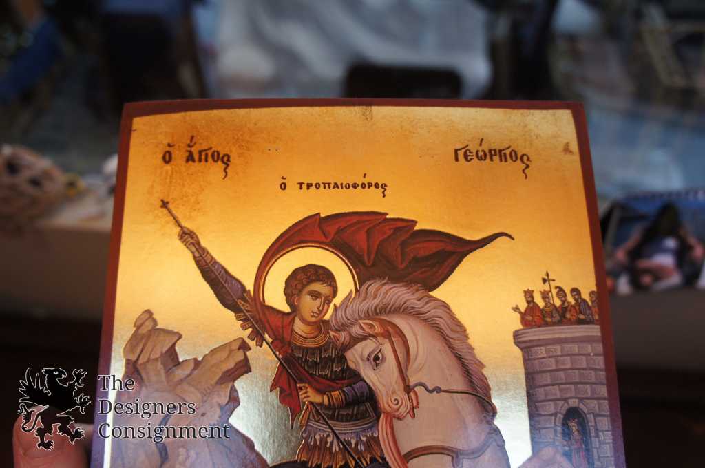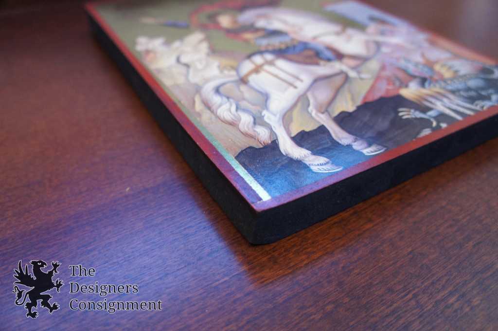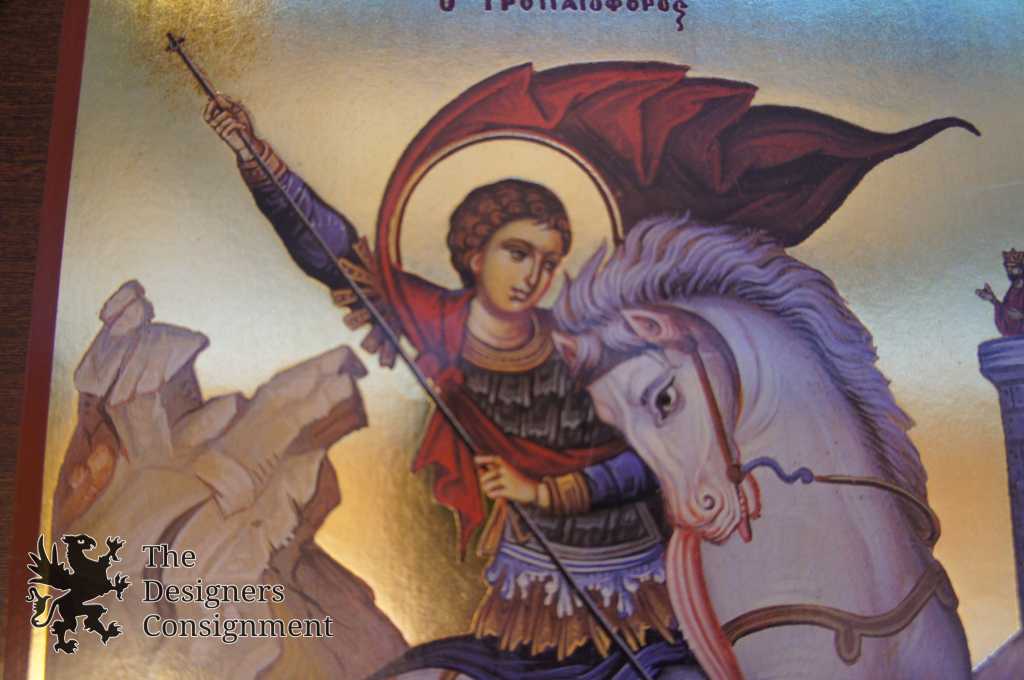 Handmade Byzantine Style Religious Christian Icon St George Slaying Dragon Greek