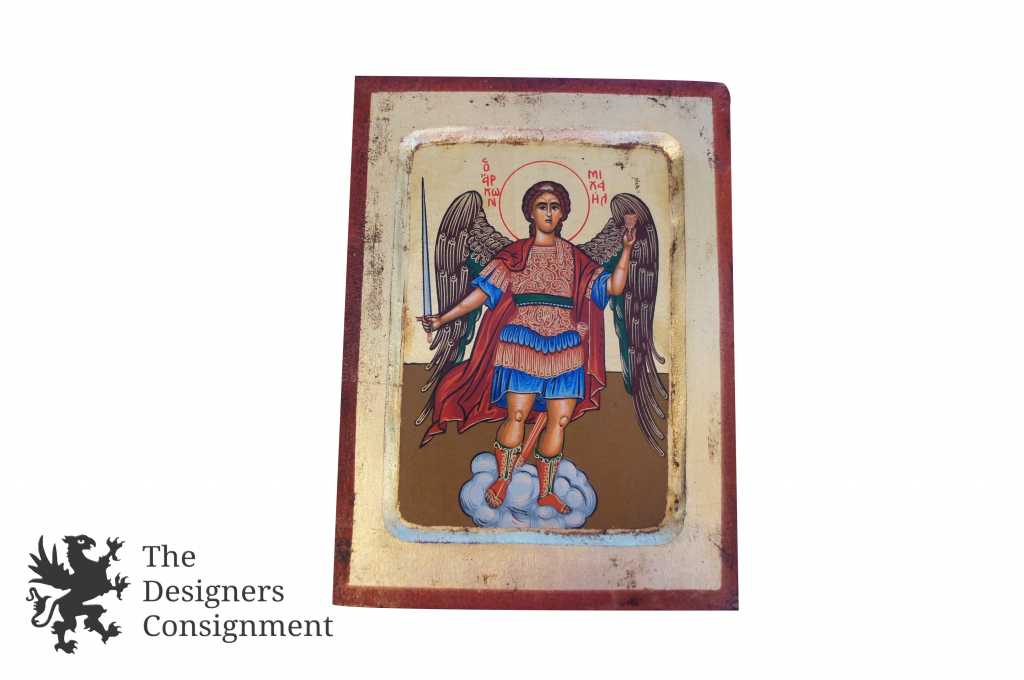 Handpainted Byzantine Style Religious Christian Icon Archangel Michael w/ Sword