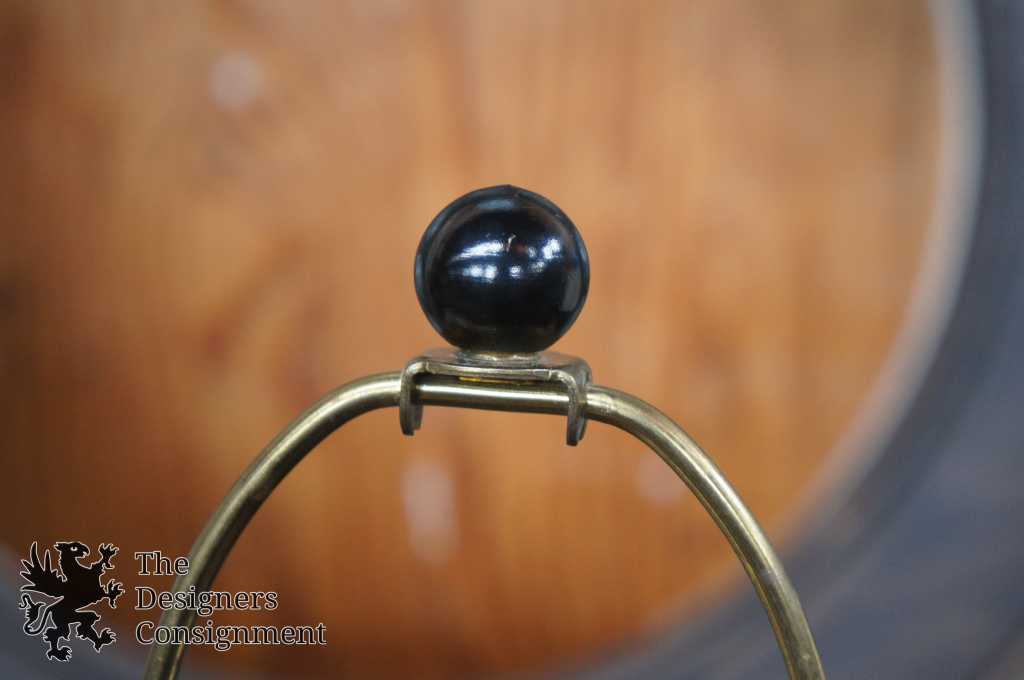 A unique and fun pair of lamps by Ethan Allen. Made from wood in arts and crafts styling. Black and blue with plaid painted design. The shades are made from linen. The perfect pair of lamps for any boys room.