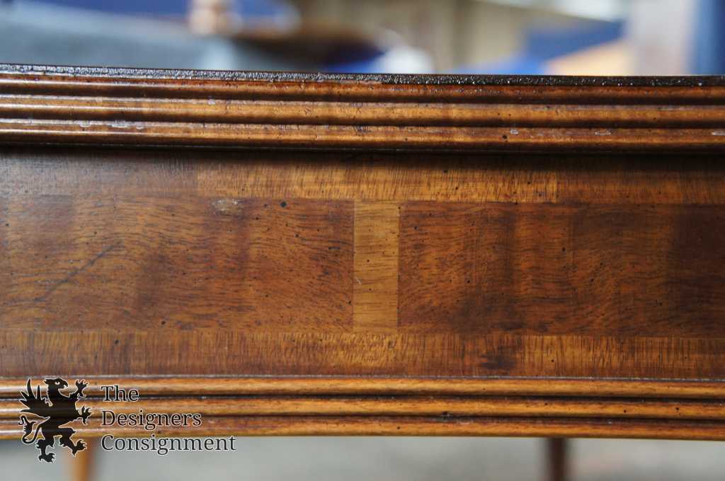 A beautiful Henredon turtle top coffee table. Made from Mahogany with a flamed top. Traditional styling with tapered and fluted legs leading to brass capped feet. A gorgeous piece for any setting. Matching side tables available separately.