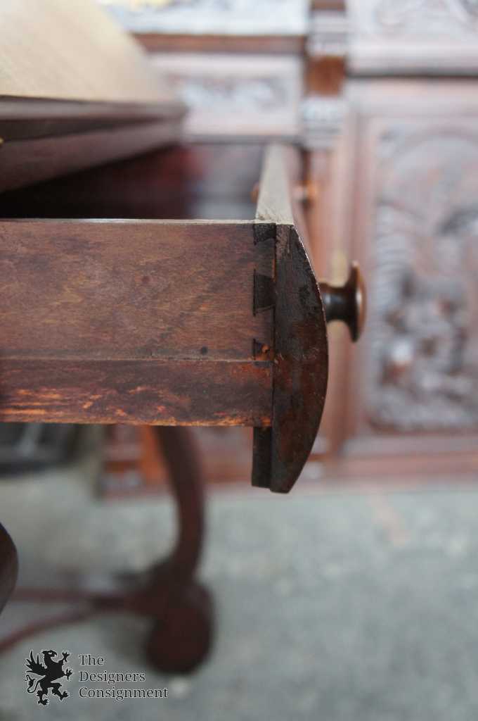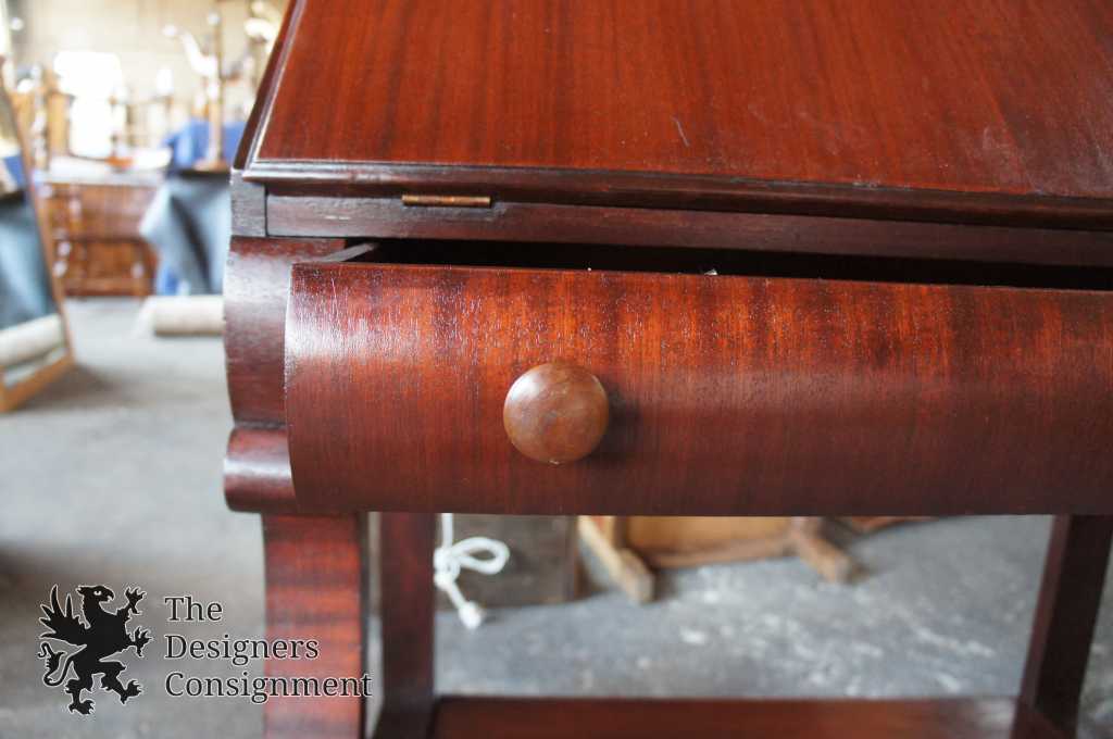 Very Good - Marks and distressing from use. Stain along the backing of interior writing area. Brass trim for left keyhole missing.