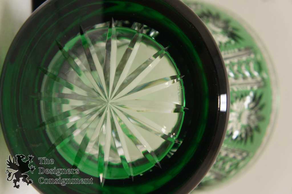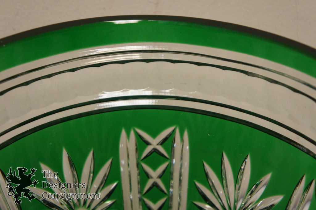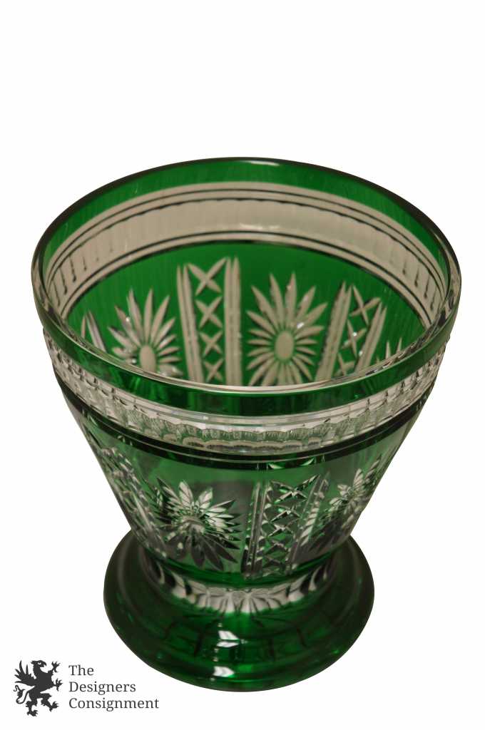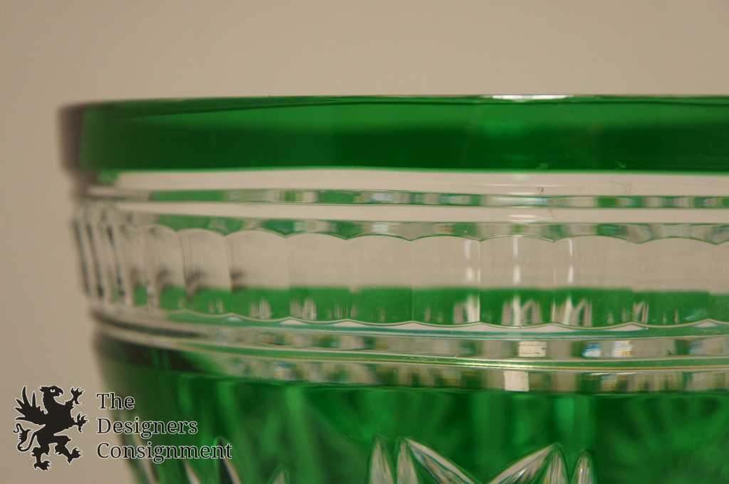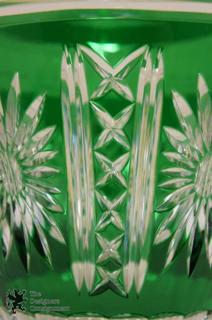 Beautiful green cut to clear glass vase by Rena. Vividly colored with nice and deeply cut sections. Could be used as an ice bucket or display piece.