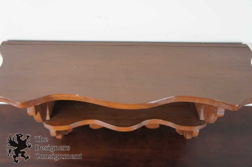 Primitive Early American Two Tier Wall Hanging Display Shelf Carved Scalloped