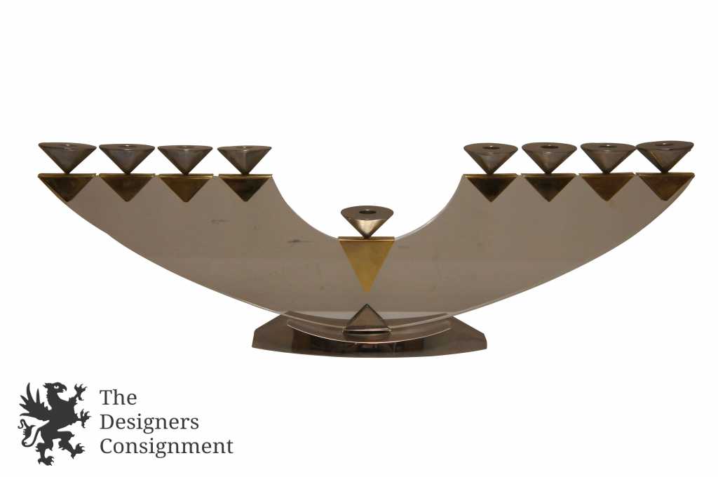 Modern Acrylic Brass Menorah 9 Light Candelabra Made in Italy Judaica Chanukah