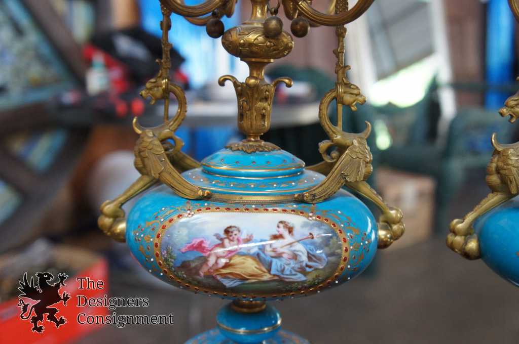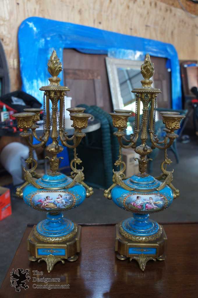 Sevres Antique Garniture Mantel Clock & Candelabra Set Gay Vicarino Movement