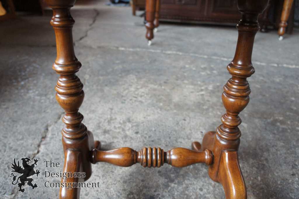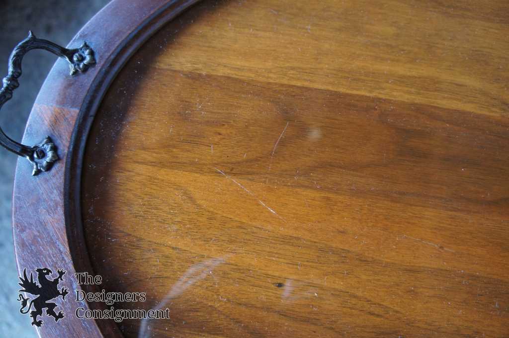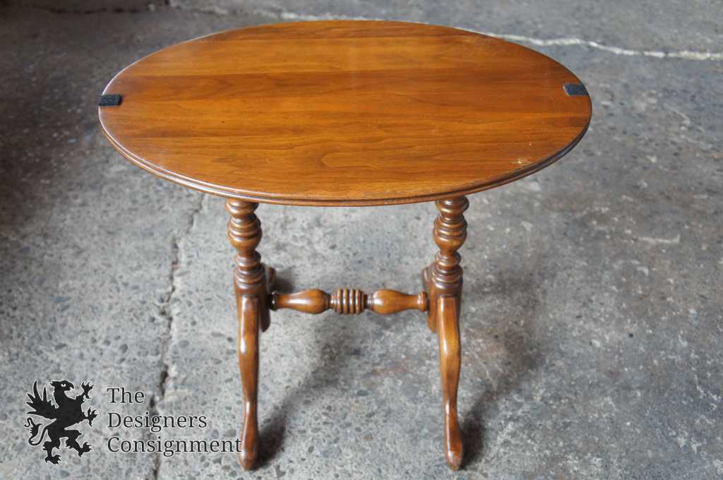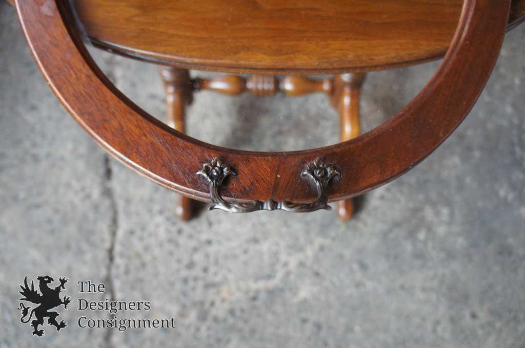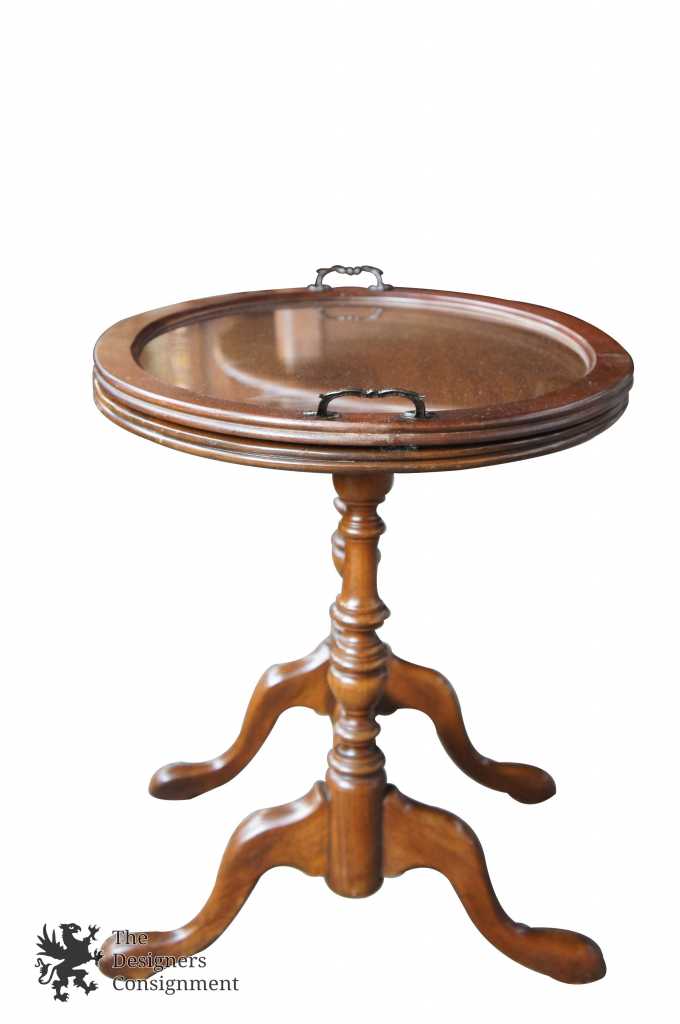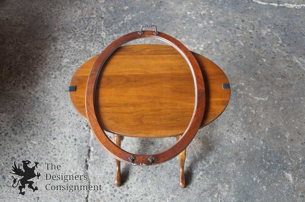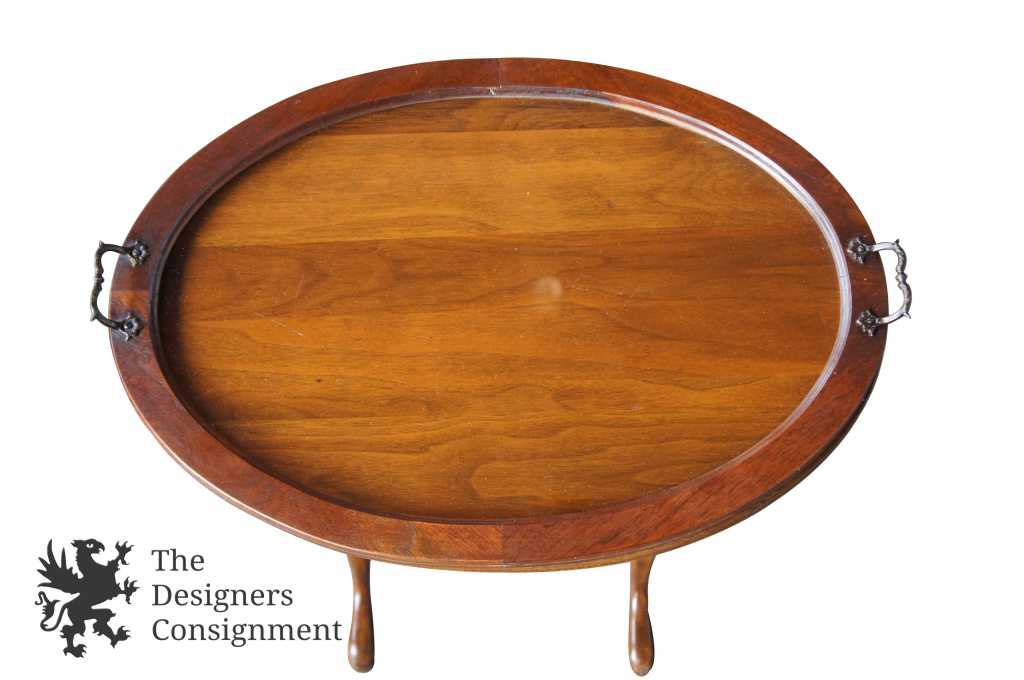 Queen Anne style walnut tray table. Can be used to display items or for serving purposes. Features turned legs with a trestle base.