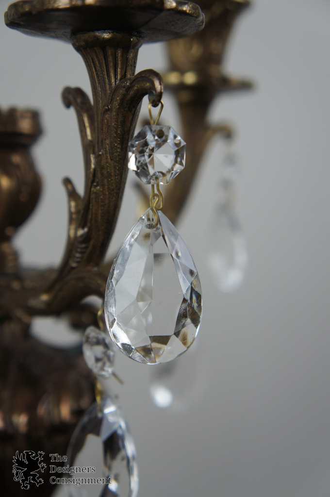 Louis XV style brass 4 arm candle holder. With a capacity of 5 candles and drop crystals, it makes for a neat addition to any settin.