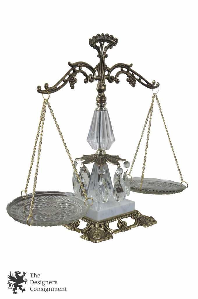 15" Vintage Brass Decorative Balance Scale of Justice Lawyer Judge Marble Base
