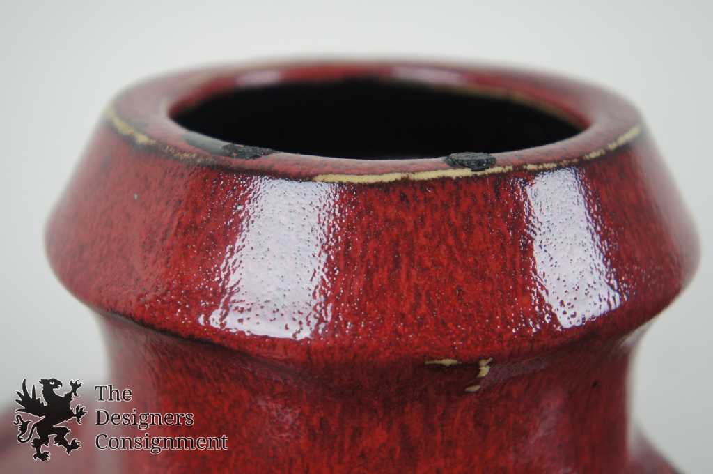 Red glazed ceramic vase.