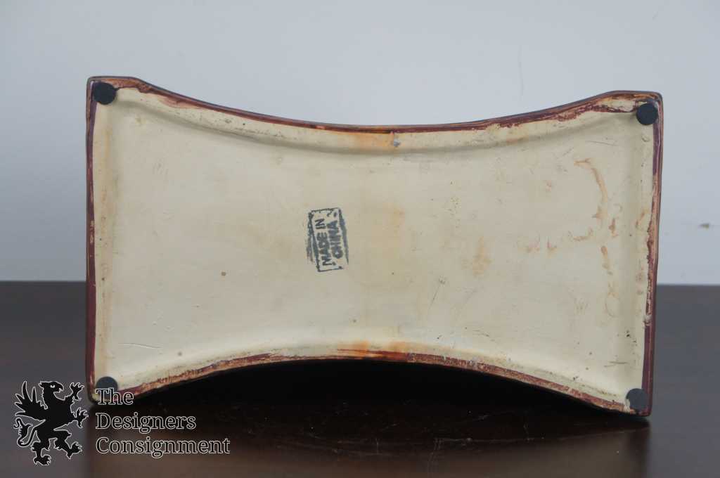 Features a distressed finish and unique demilune shape w/ medallion.