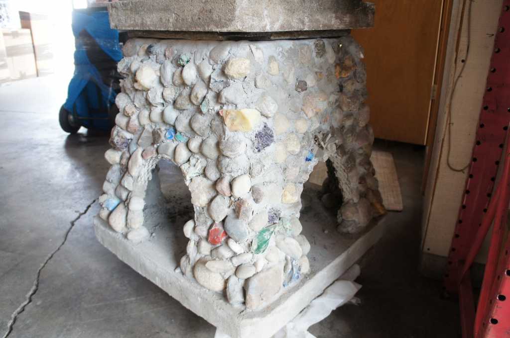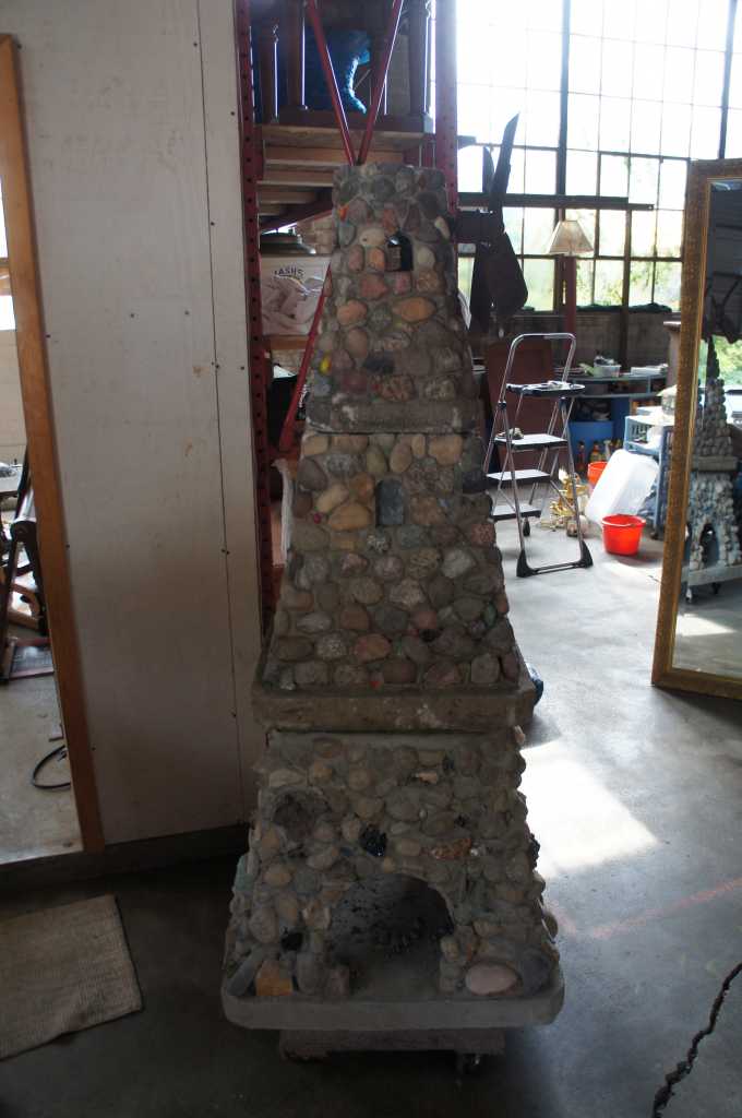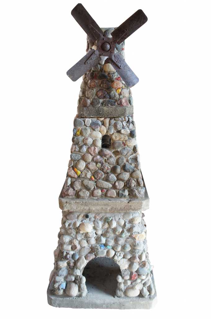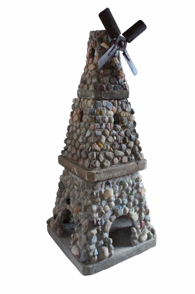 Up for consideration is a rare one of a kind handmade stone windmill sculpture. Fabricated from a unique collaboration of stones and minerals such as river rocks, quartz, agate and amethyst. The windmill is composed of 3 sections with some windows and pass thrus. Great for use in any outdoor setting.
