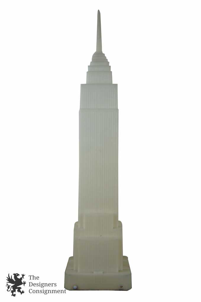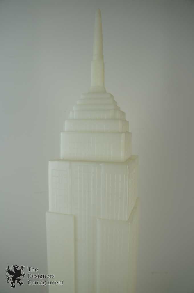 Takahashi Denson for Midori (Japan, 20th century), circa 1980s. An opaque plastic desk lamp in the form of the Empire State Building. Stamped Midori. Approximate height 38", width 10.25", depth 8.75". Note: The Midori Empire State Building lamp was featured in several 1980s movies, including "Cobra" with Sylvester Stallone in 1986, "Coming to America" with Eddie Murphy in 1988, "Big" with Tom Hanks and Elizabeth Perkins in 1988.