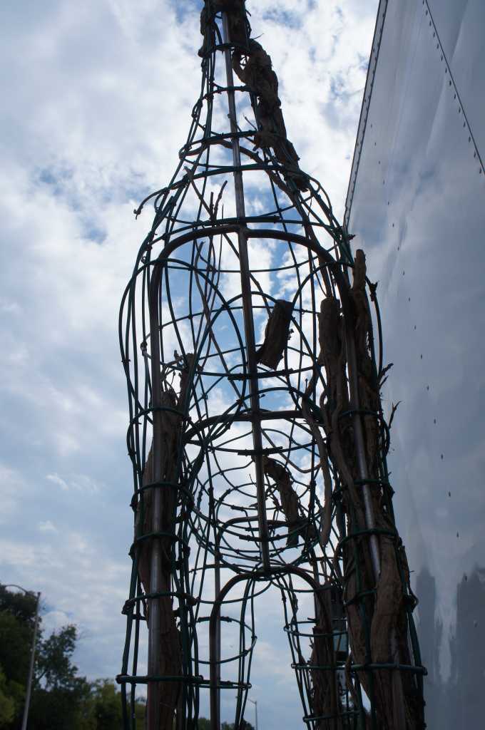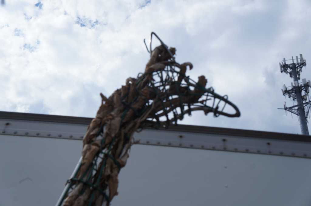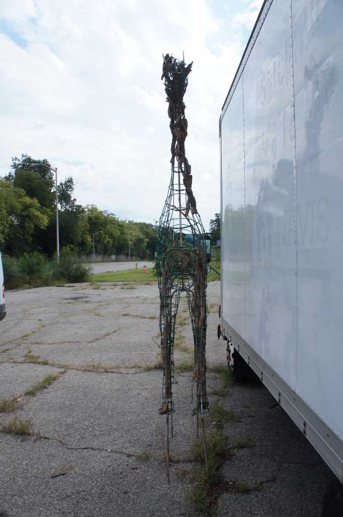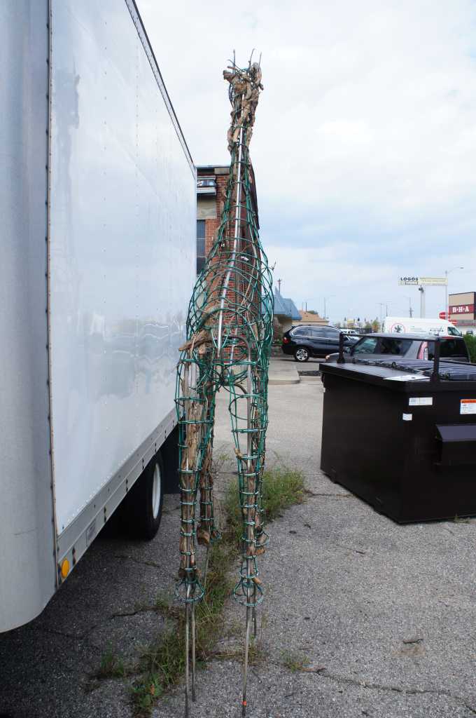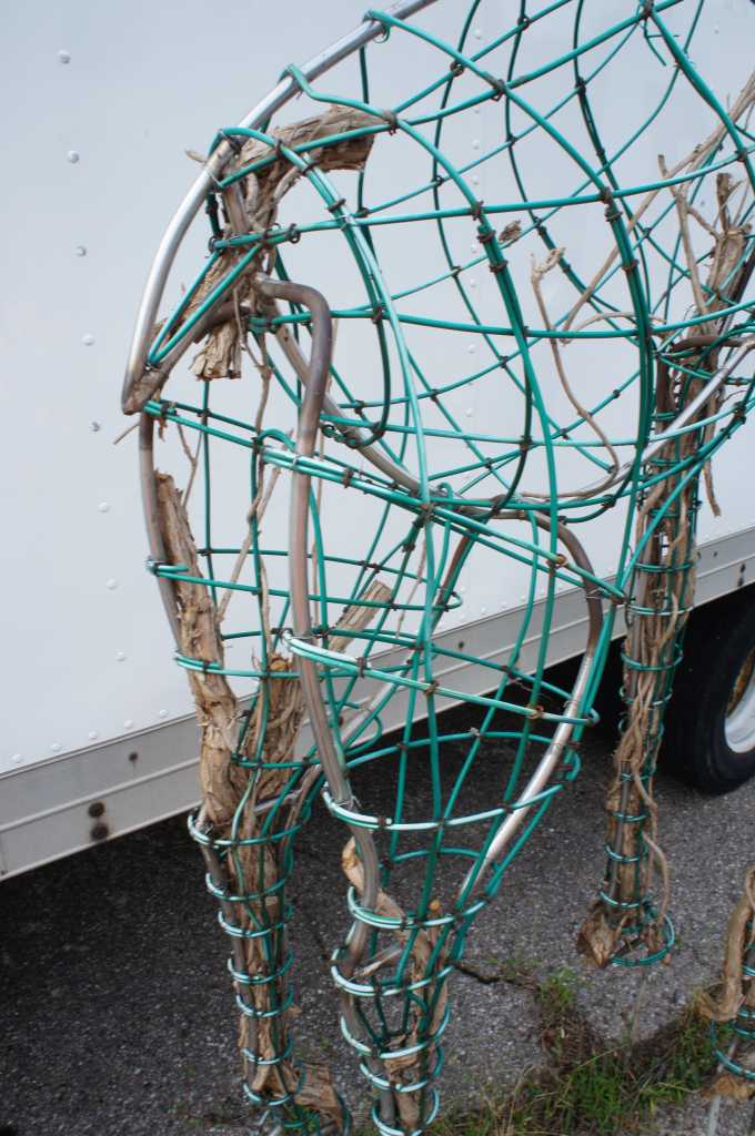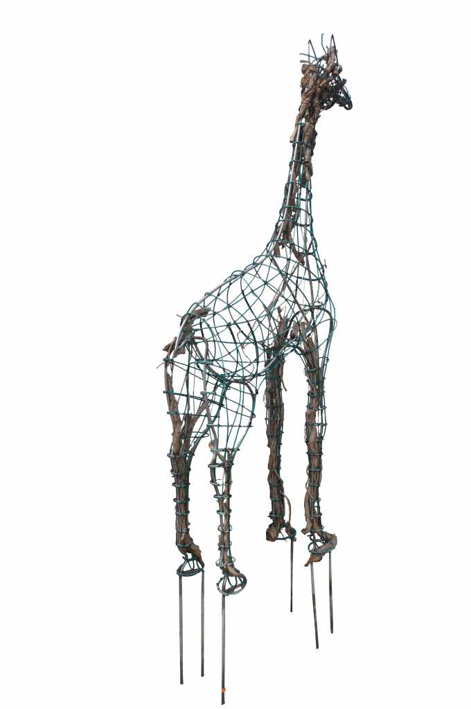 A beautiful handmade giraffe topiary. The perfect statement for any garden setting. 9 feet tall without the steaks that set it into the ground.