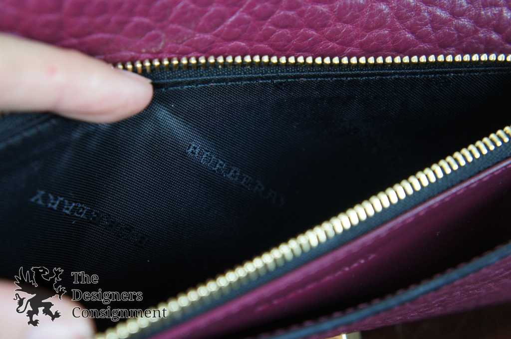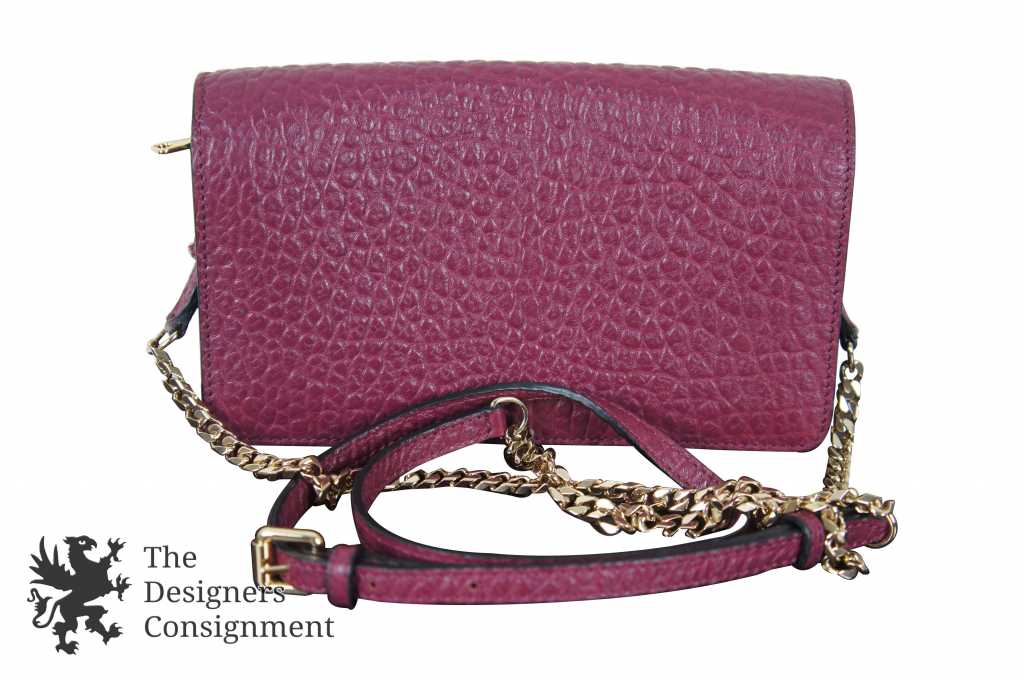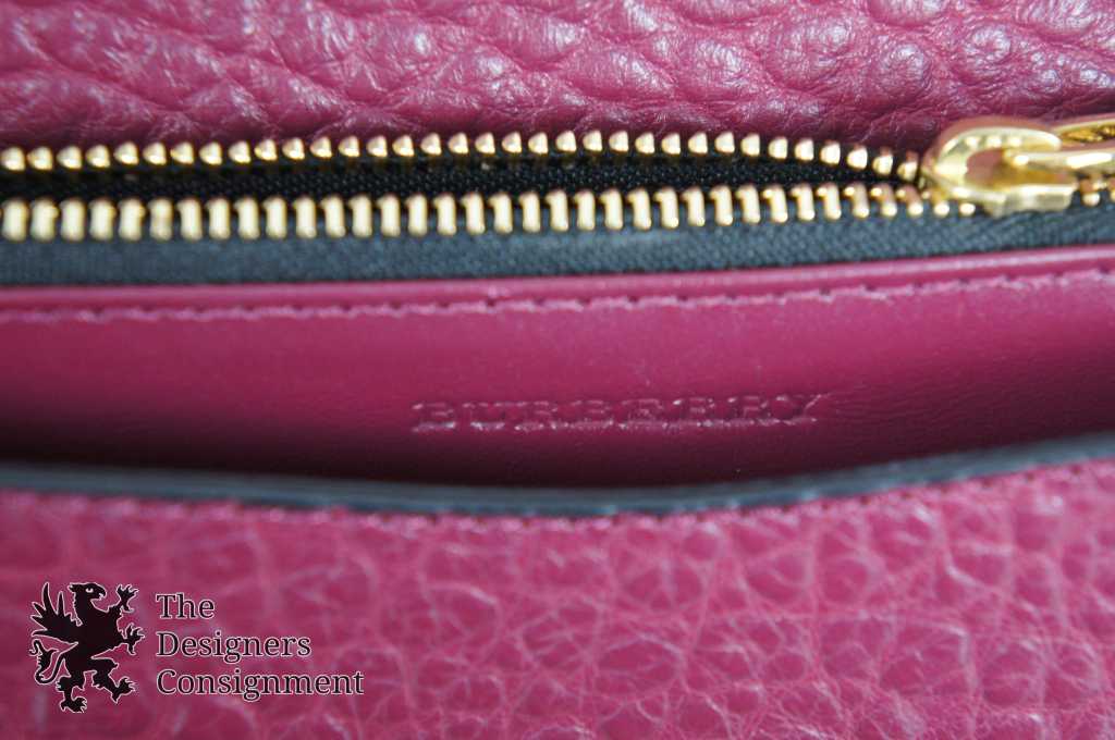 Genuine Burberry Signature Grained Madison Cross-body Wallet on Chain in Dark Plum/ Purple. Originally $850, currently sold out.