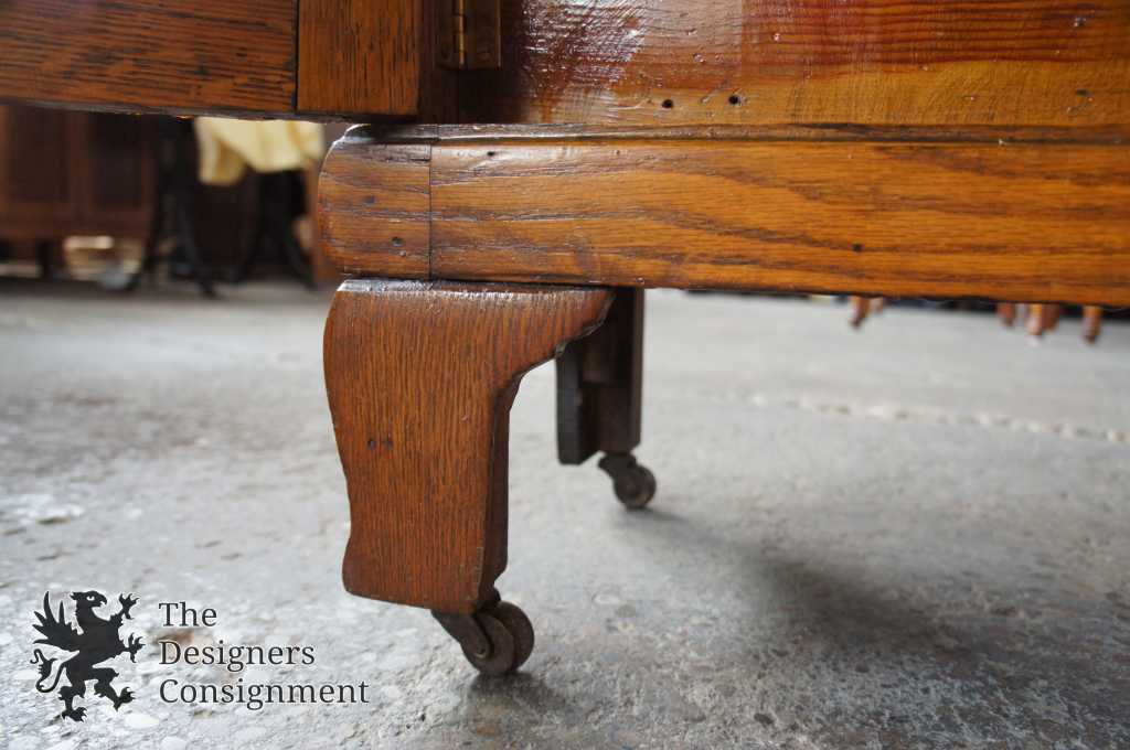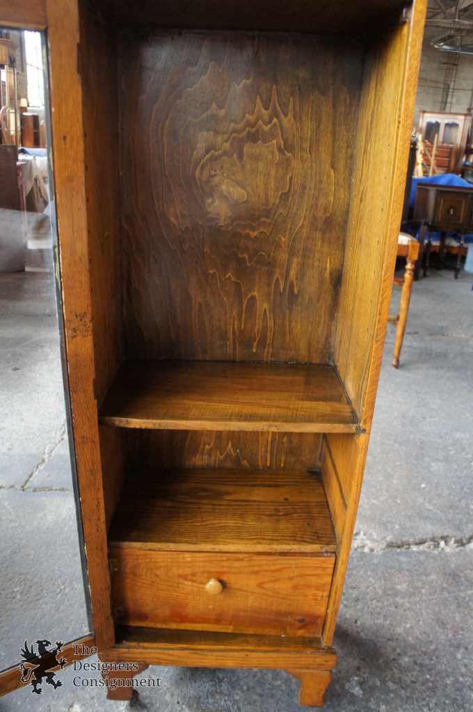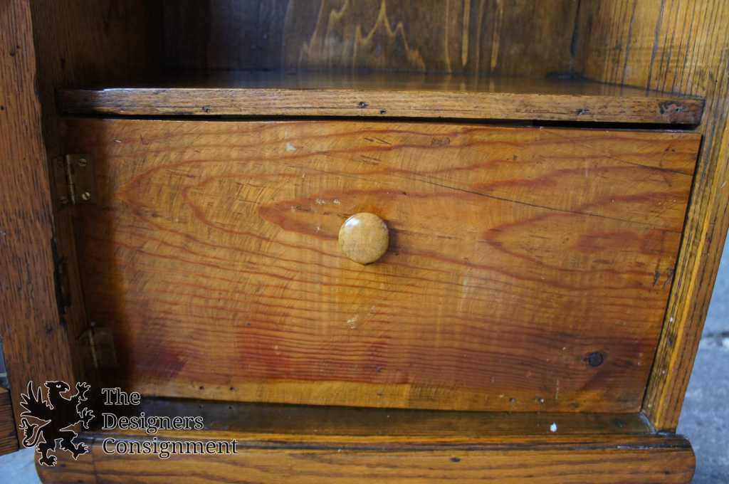 Good overall condition. Marking, distressing and staining from use. Lower door within cabinet originally hinged downward. Hinge marks can be seen at the very bottom.