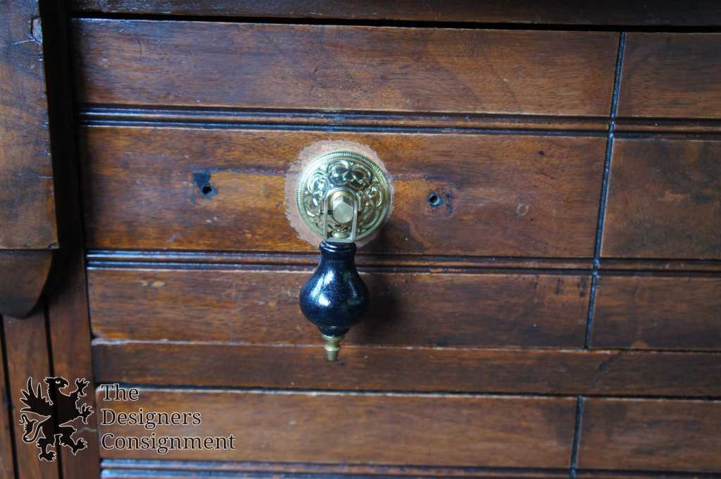Very Good Considering Age.  Original hardware changed out at some point. Original holes can be seen flanking hardware.