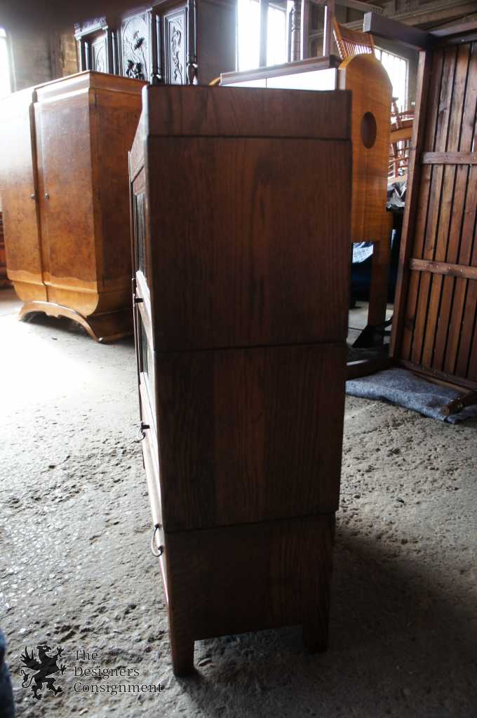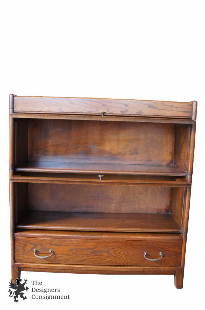 Up for consideration is an early 20th century barrister stacking bookcase from the Grand Rapids Michigan Furniture Association. Made from oak with two shelves and lower drawer for storage. Circa 1890s.