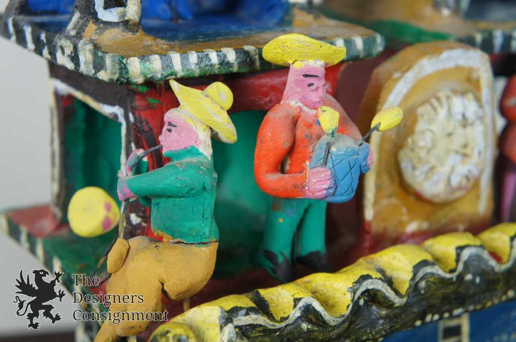 Beautiful Mexican Ceramic Folk Art Tower. Hand painted with removable figures. A neat addition to any collection