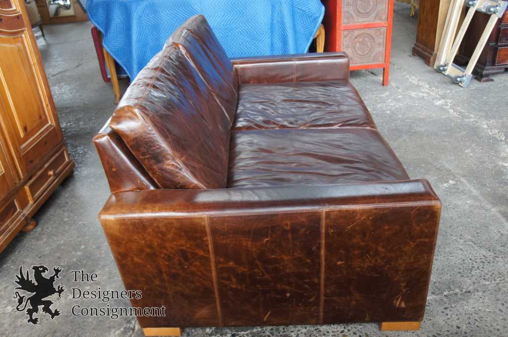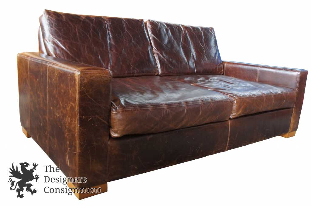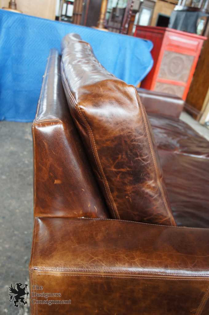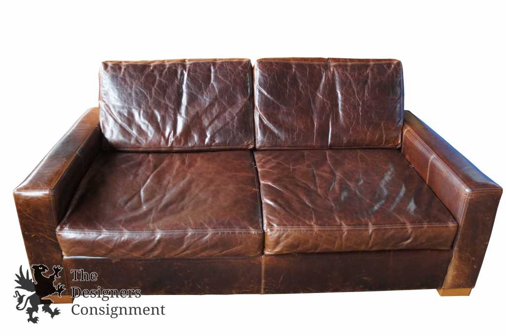 Grant Sofa by Thrive Furniture. A classic mid century modern design. Comfy brown leather upholstery with squared feet.