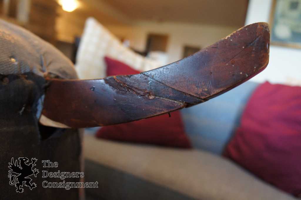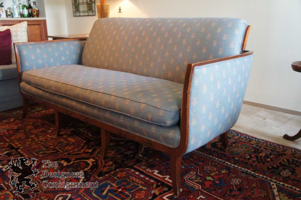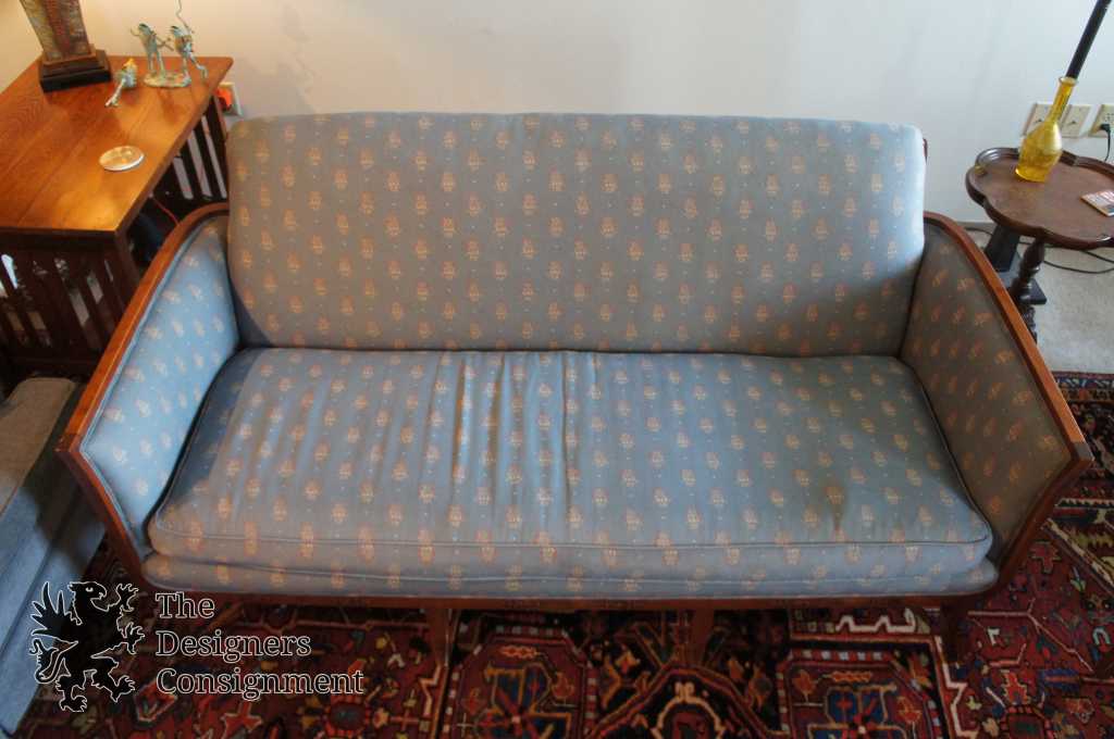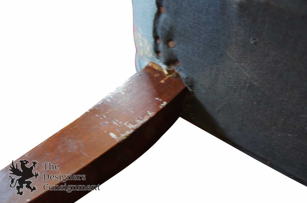 Fair Condition - Back Leg Repaired Poorly. Blemishes and wear to upholstery.