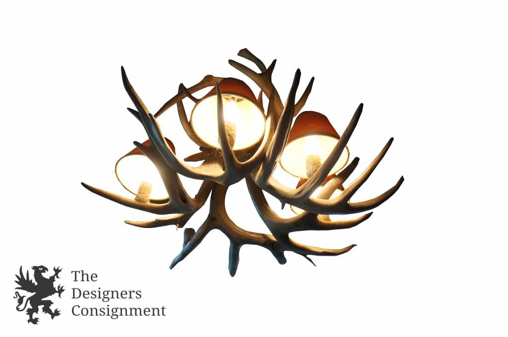 Features 8 real antlers intertwined to support 6 candlestick lights.
