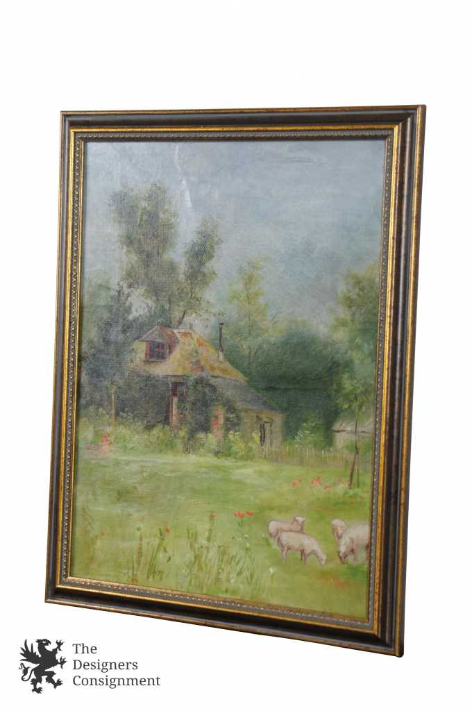 Up for consideration is a late 19th century country landscape showing sheep grazing the fields. An oil on canvas that dates back to 1896. Originally signed WOB. This piece was purchased with a damaged with a filthy canvas. It has since been cleaned, touched up and repaired. A vibrant scene that will look great in any setting!