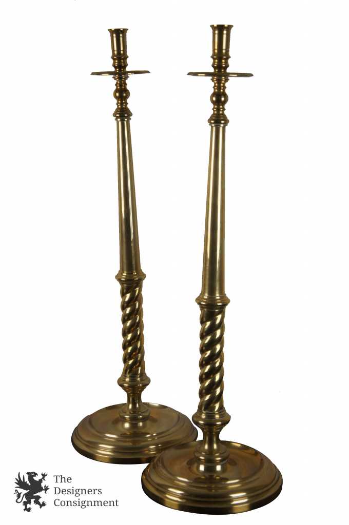 An elegant pair of candlesticks by Maitland-Smith. Made from polished brass with a barley twist design. The perfect compliment to any setting.