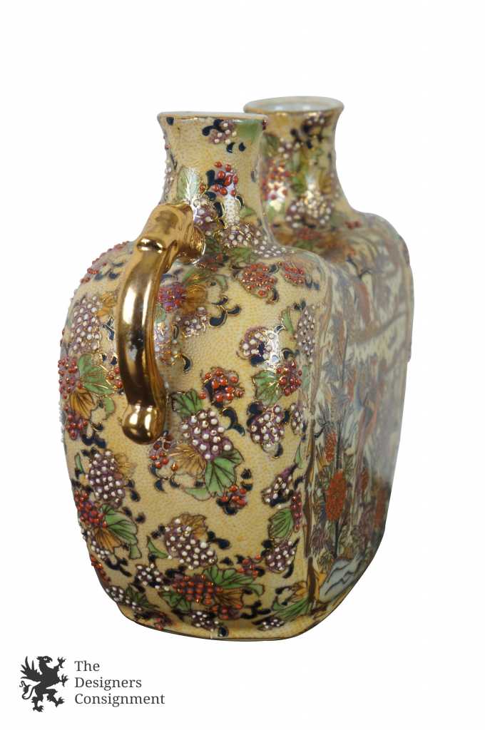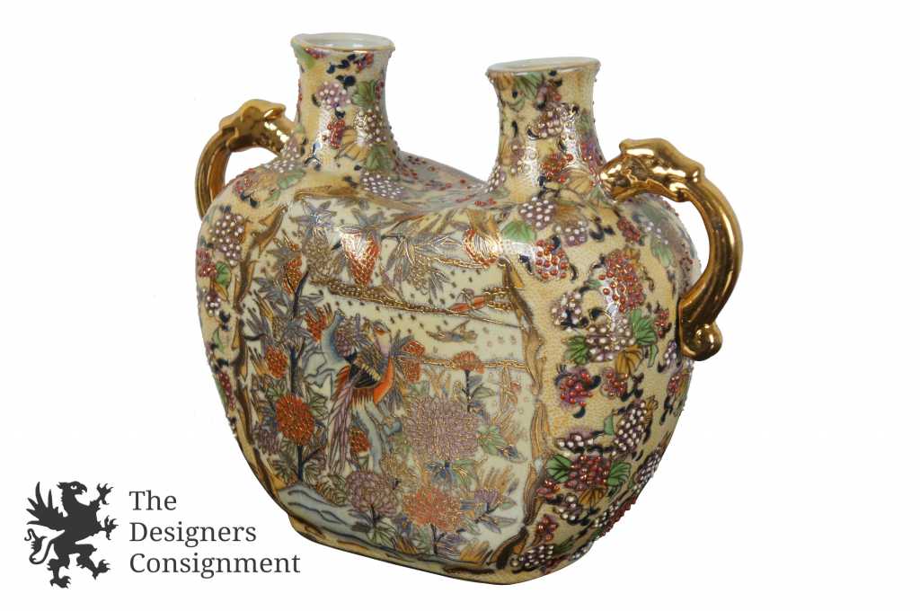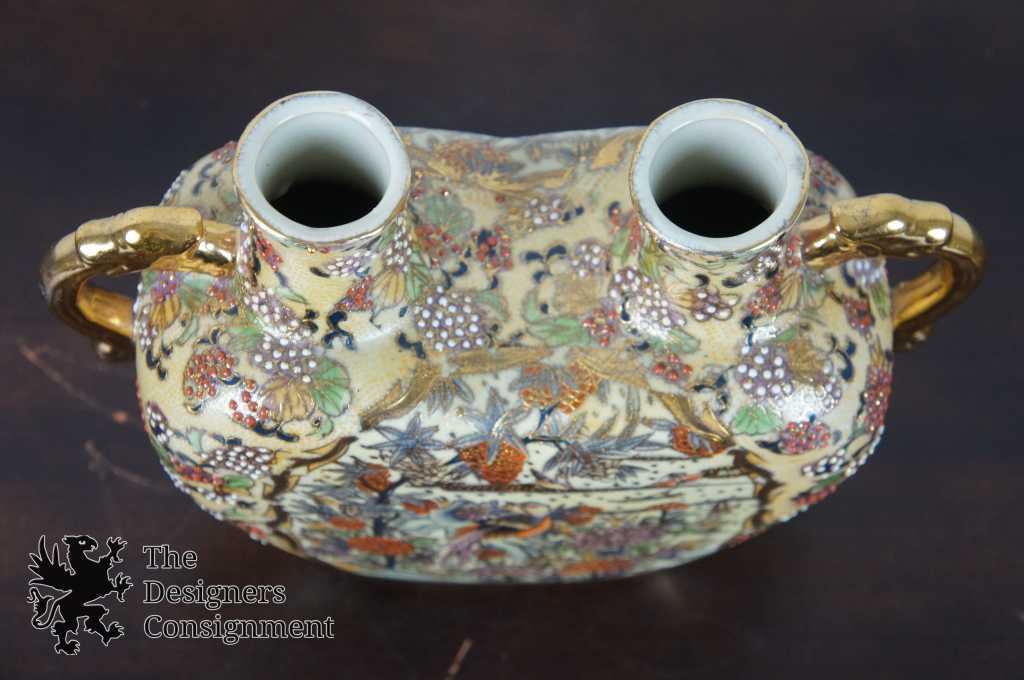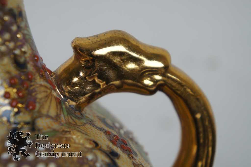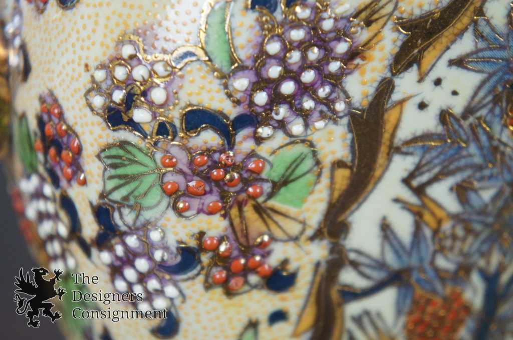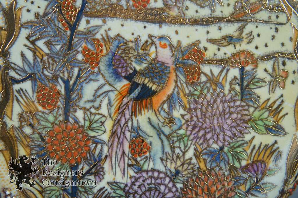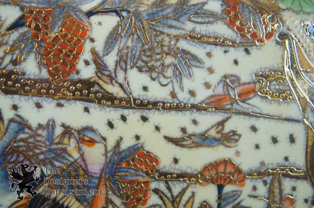 Features birds and floral motifs, an off white crackle glaze and elaborate raised polychrome and gold decorations.