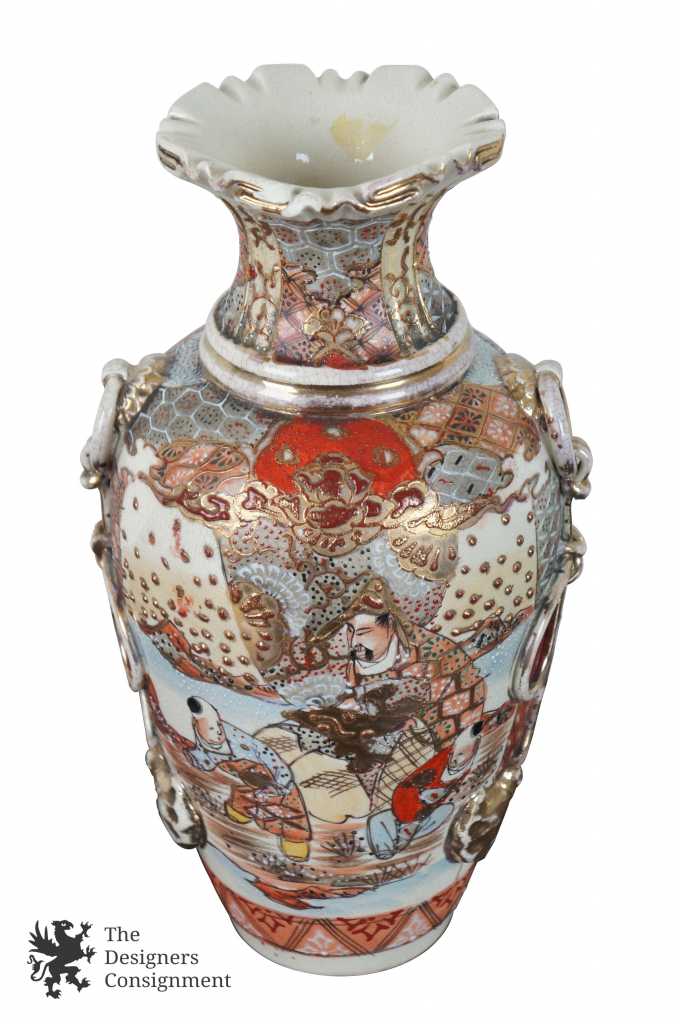 Features elaborate raised polychrome and gold design with samurai, children and tassels.