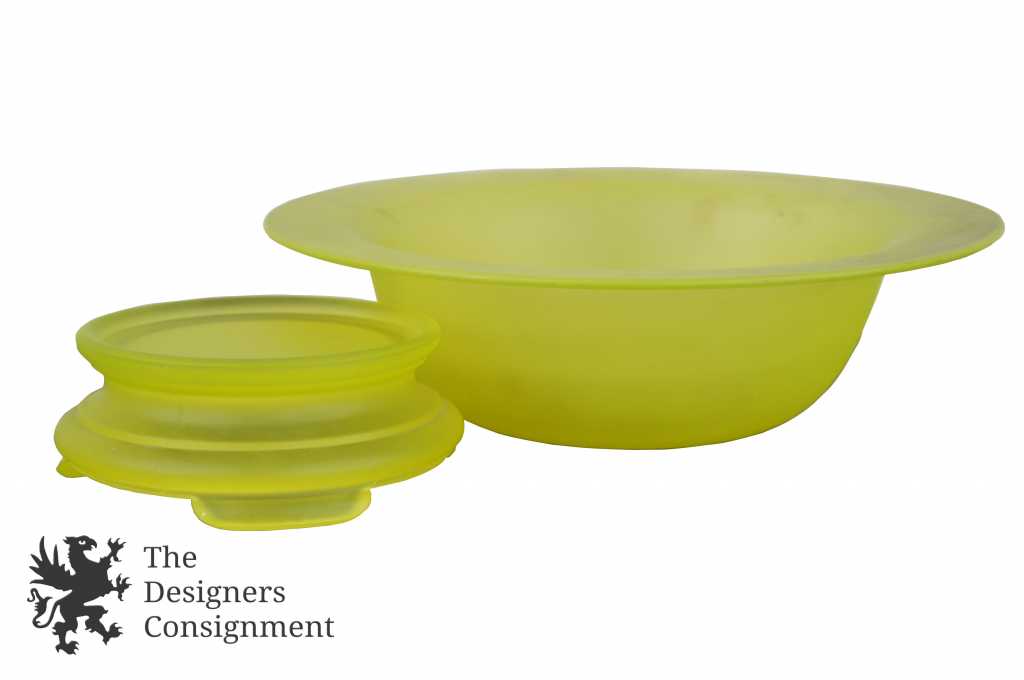 Rare Uranium Satin Glass Fruit Bowl & Pedestal Frosted Footed Dish Depression