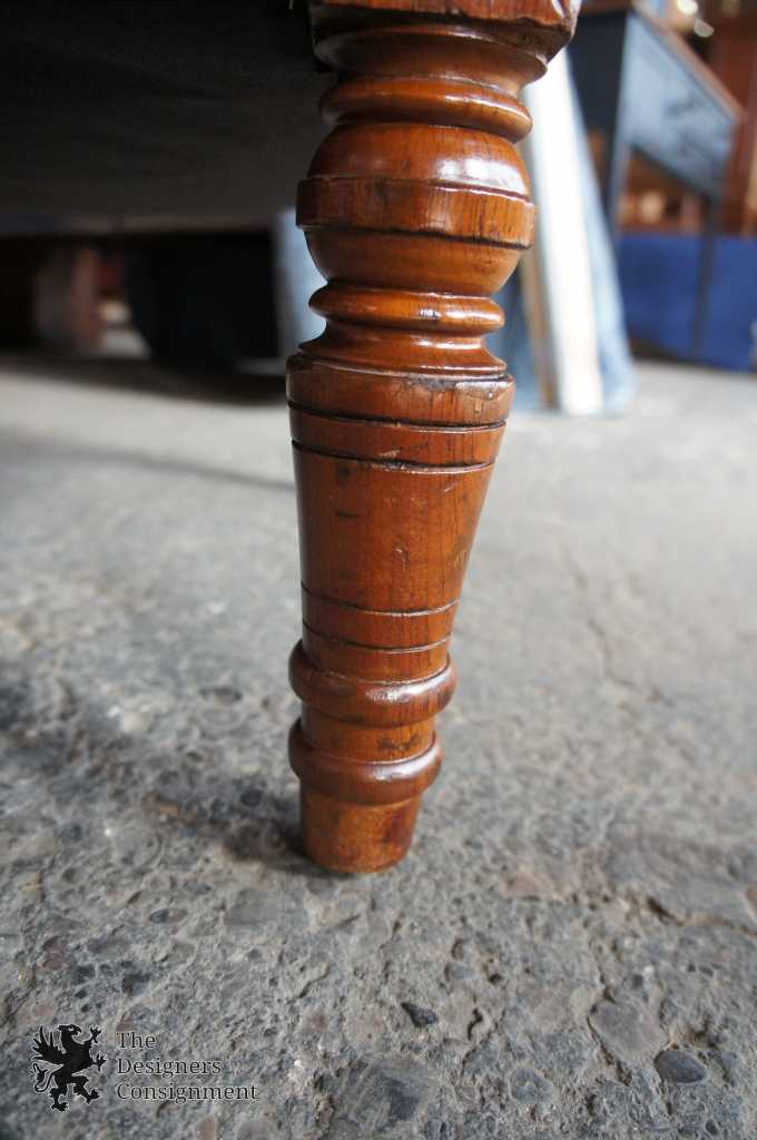 The ottoman to the chair is a later addition. it was made around the 1950s and shows a darker wood tone and removable legs