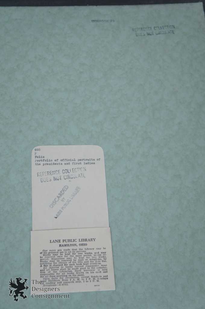 The portfolio of Official portraitrs of the presidents and first ladies. A rare find by Coleman Engraving Co., Chicago, 1929. Hardcover. Large brown cloth covers with raised gilt stamping on front cover of the White House and an eagle. Included are full page portraits of the Presidents along with a page long biography which includes information on the First Ladies. The first 31 Presidents included- from George Washington to Herbert Hoover.