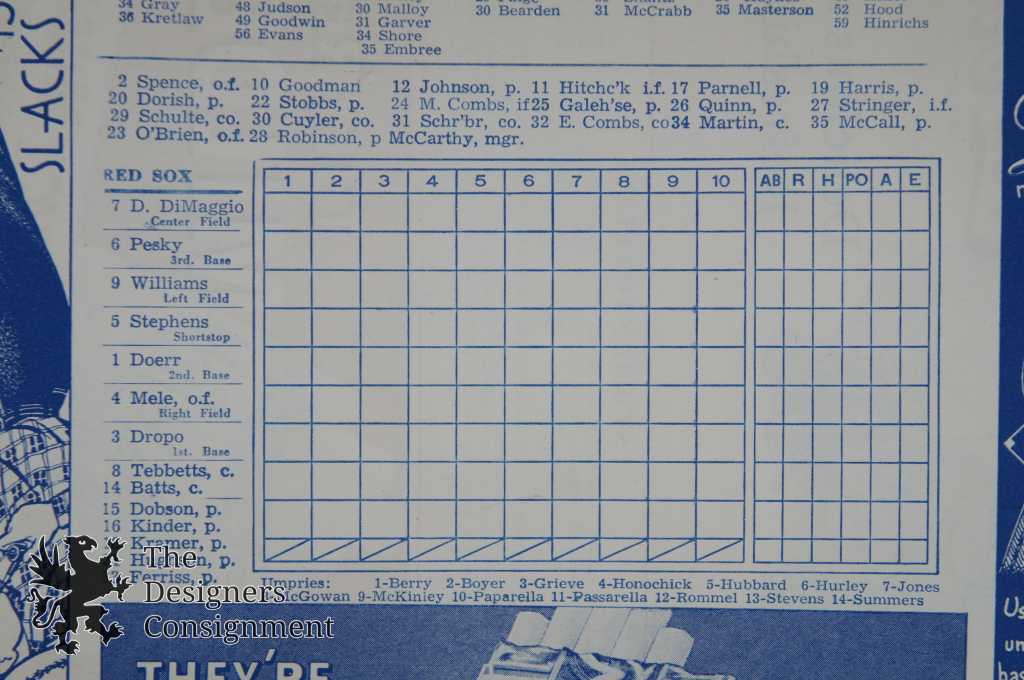 Vtg 1949 Red Sox Program Scorecard Boston vs. Philadelphia Baseball MLB DiMaggio