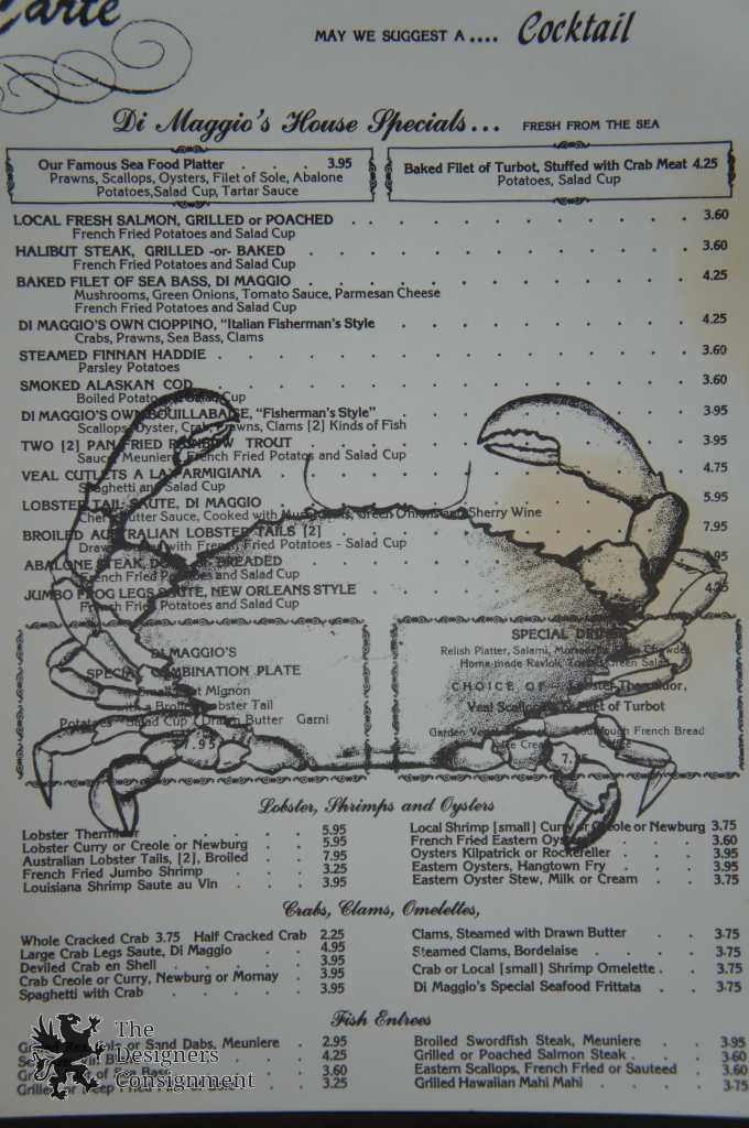 Vtg Dom & Joe DiMaggio's Restaurant Autographed Signed Menu w/ COA Baseball MLB