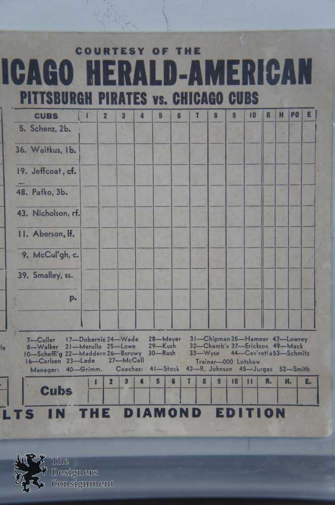 Vintage 1949 Cubs Free Scorecard Chicago vs. Pittsburgh Pirates Baseball MLB