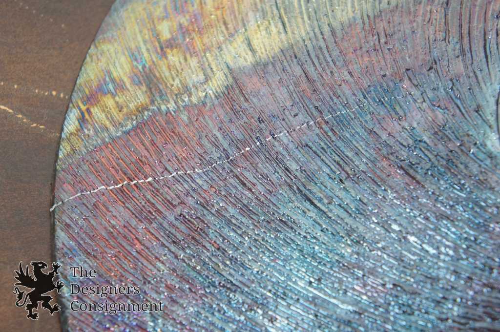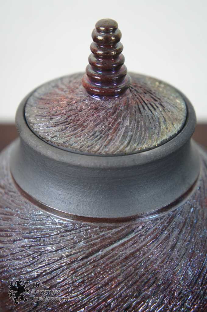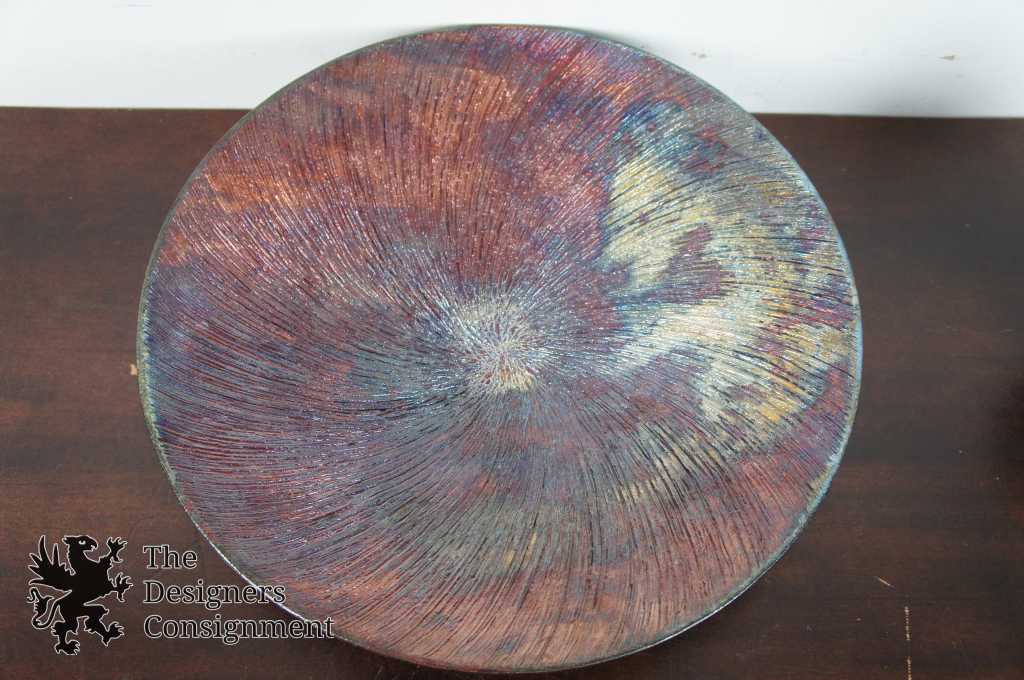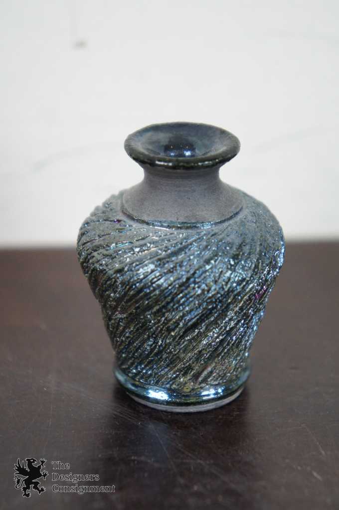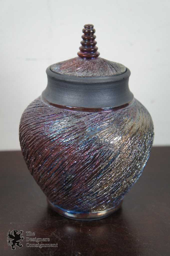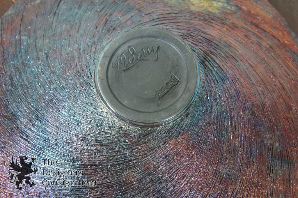 created by the fire and smoke, turning shades of gray and black. This reduction time also brings out the beautiful metallics, rainbow colors and intricate crackles of the glaze surface. Before the vessel cools completely it is quenched in water to stop the final color changes.