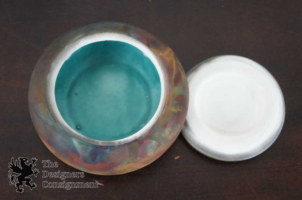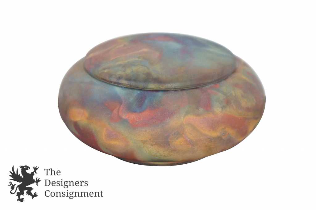 A lovely hand throw Raku pottery lidded dish by Jt Abernathy. A rare find as JT doesn't do a whole lot of Raku.