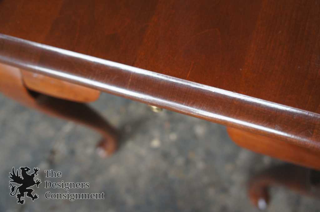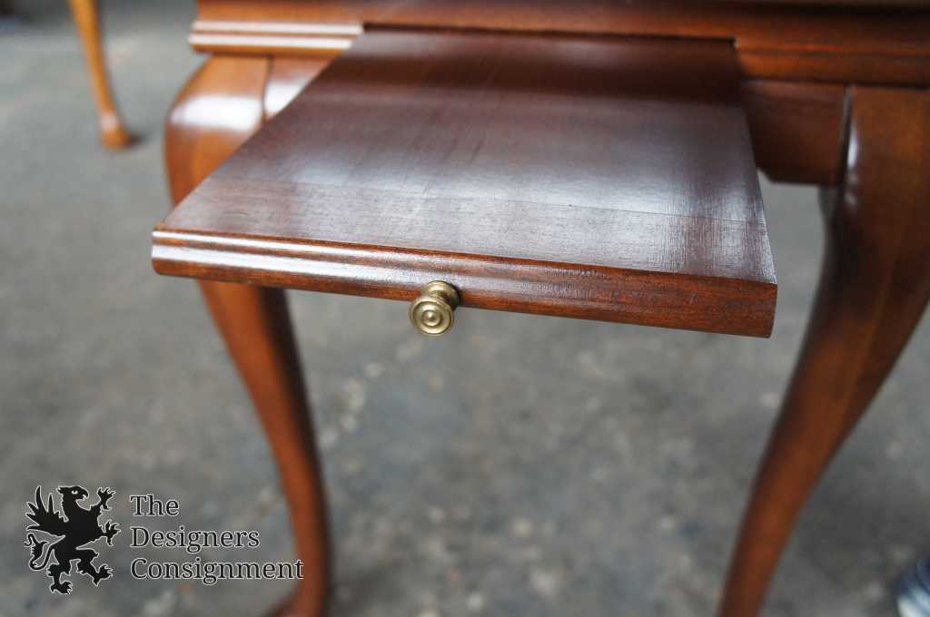 A lovely tea table from Lenoir House collection by Broyhill. Made from solid cherry in the USA, pattern number 3220-10. A sleek design with a smooth top, cabriole legs and pullout tray tables. The legs break down for ease of storage and moving.