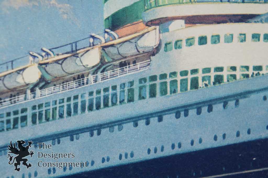 Features the Flagship Cruisliner of the Holland-American Line. It is mounted, framed and ready to be hung.